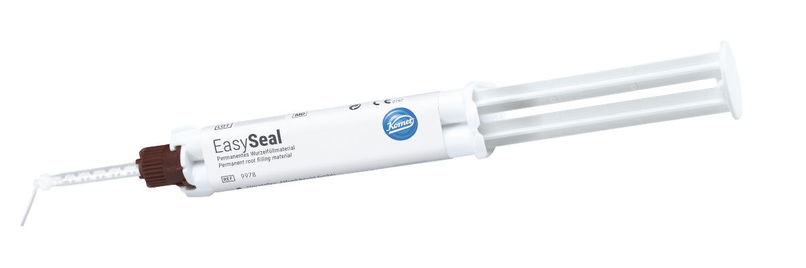Un sellado apical permanente del conducto radicular puede conseguirse con EasySeal, un material de obturación radicular a base de resina epoxi. Particularmente adecuado para el sellado ortógrado de conductos radiculares. EasySeal es radipaco y estable dimensionalmente. El material es suministrado en una jeringa doble, facilitando la aplicación sin necesidad de mezclar los componentes de antemano. El material EasySeal puede ser manipulado durante 15 minutos. El fraguado final se alcanze dentro de 24 horas a una temperatura corporal de 37°C.